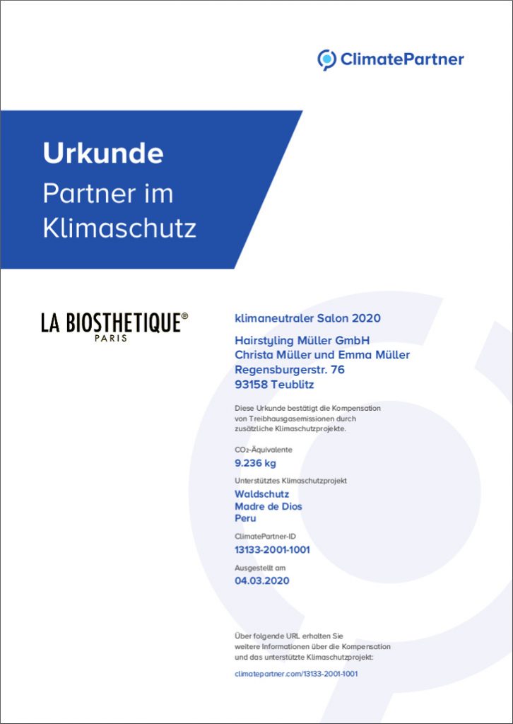 Friseur Teublitz klimaneutraler SalonFriseur Teublitz klimaneutraler Salon Urkunde